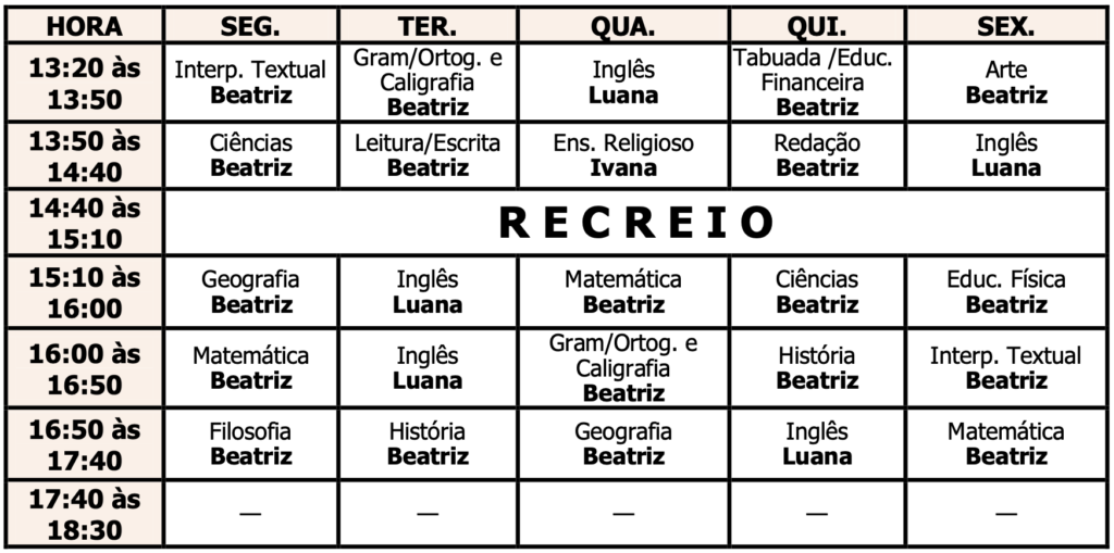 AULAS 4º ANO “A” – Presencial